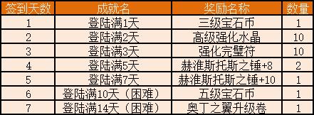 10月20日至11月9日,玩家每日登录新服【破坏神】,即可获得五级宝石币、赫淮斯托斯之锤+10等丰厚道具,累积登陆14天即可获得神级战斗坐骑“奥丁之翼”!